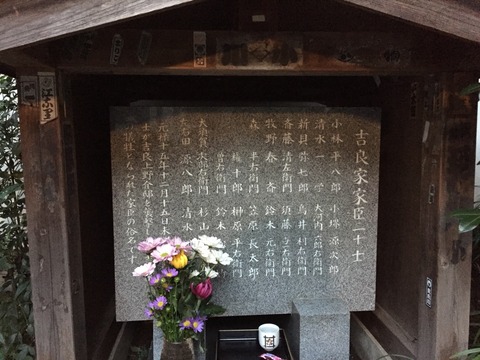 赤穂浪士の討ち入りに際して、主君を守ろうと奮迅して命を落とした吉良家の家臣らを弔ったものです。