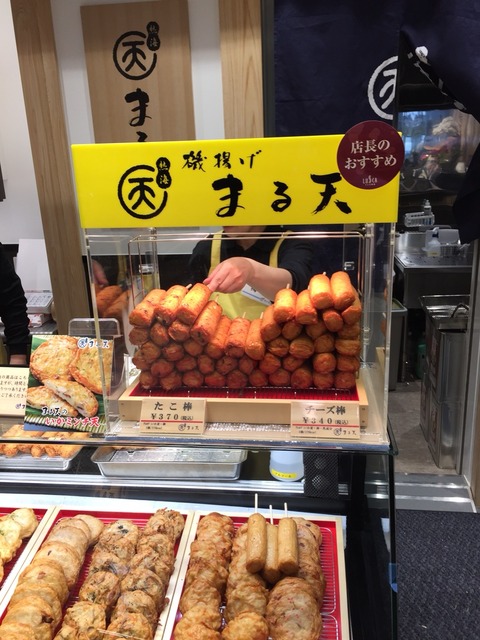 アジの唐揚げが美味の「伊豆吉匠」、干物で有名な「釜鶴」、磯揚げ「まる天」のタコ棒・チーズ棒はおやつに最適!…といっても結構ボリュームがあるので要注意です。