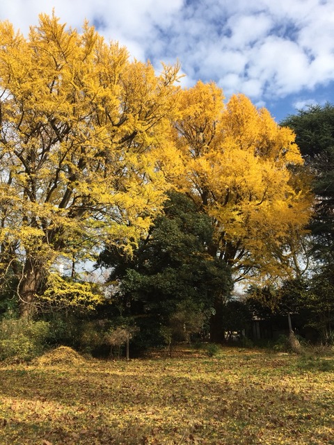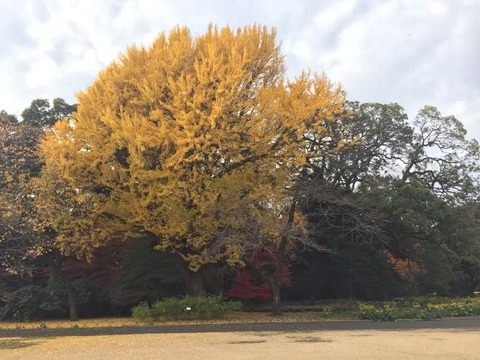 すでに葉を落とし枯れ木のように佇むイチョウなんかが混在していて、