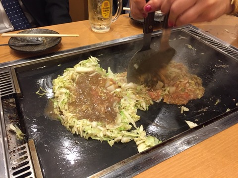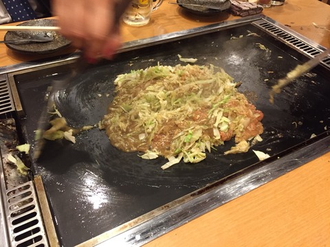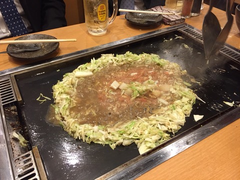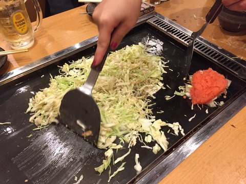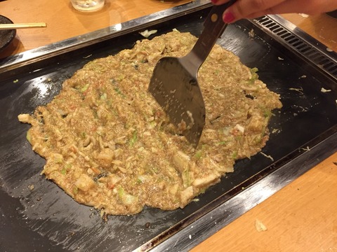 いい感じに仕上がりました~。これぞもんじゃ焼き!