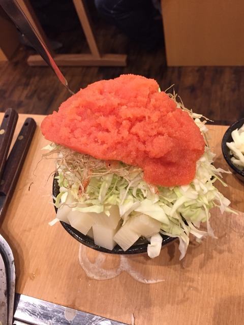 まずはキャベツ。明太子とモチはちょっとどけときます。