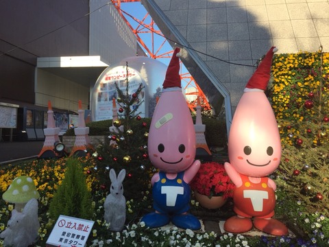 クリスマスシーズンなので、東京タワー公式キャラクター「ノッポン」もサンタ帽。