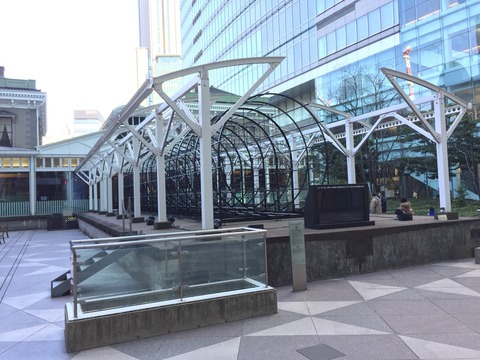 高層ビル群のなかを少しさまよいながら、ようやく見つけました。「旧新橋停車場」!