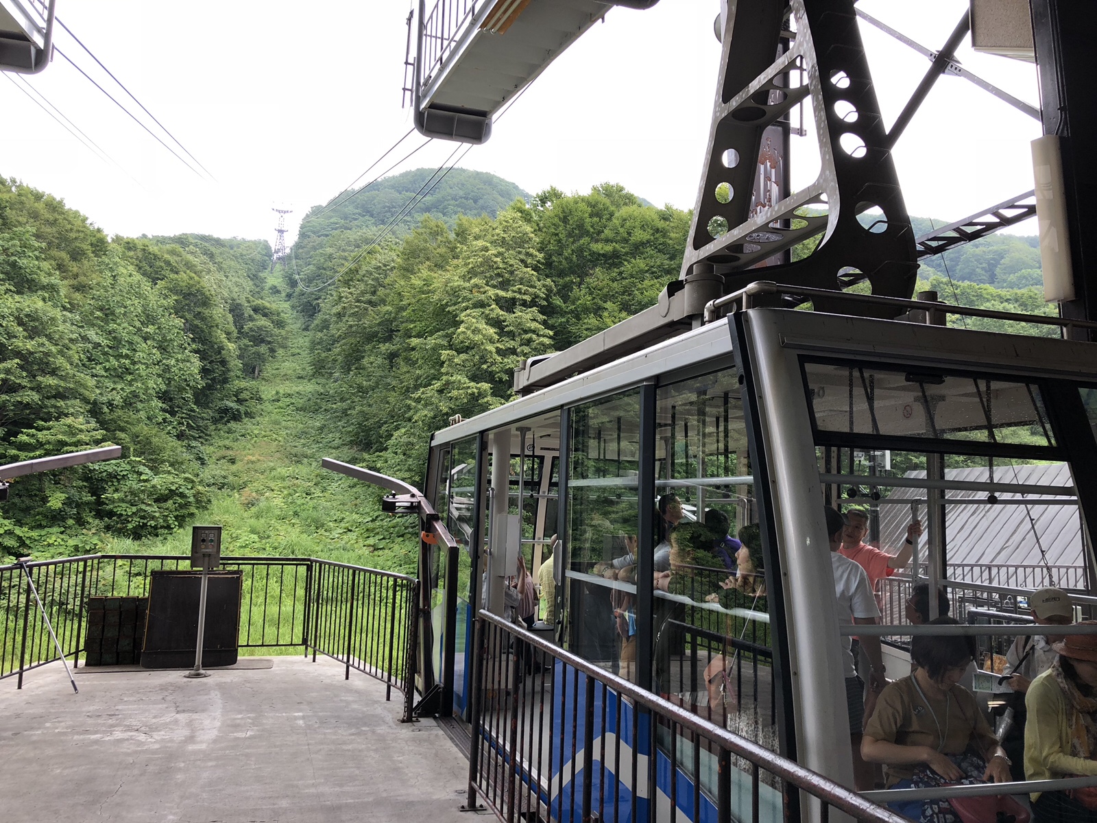 山頂付近で熊の目撃情報があったとの張り紙にビビりながら、ゴンドラに乗り込みます。