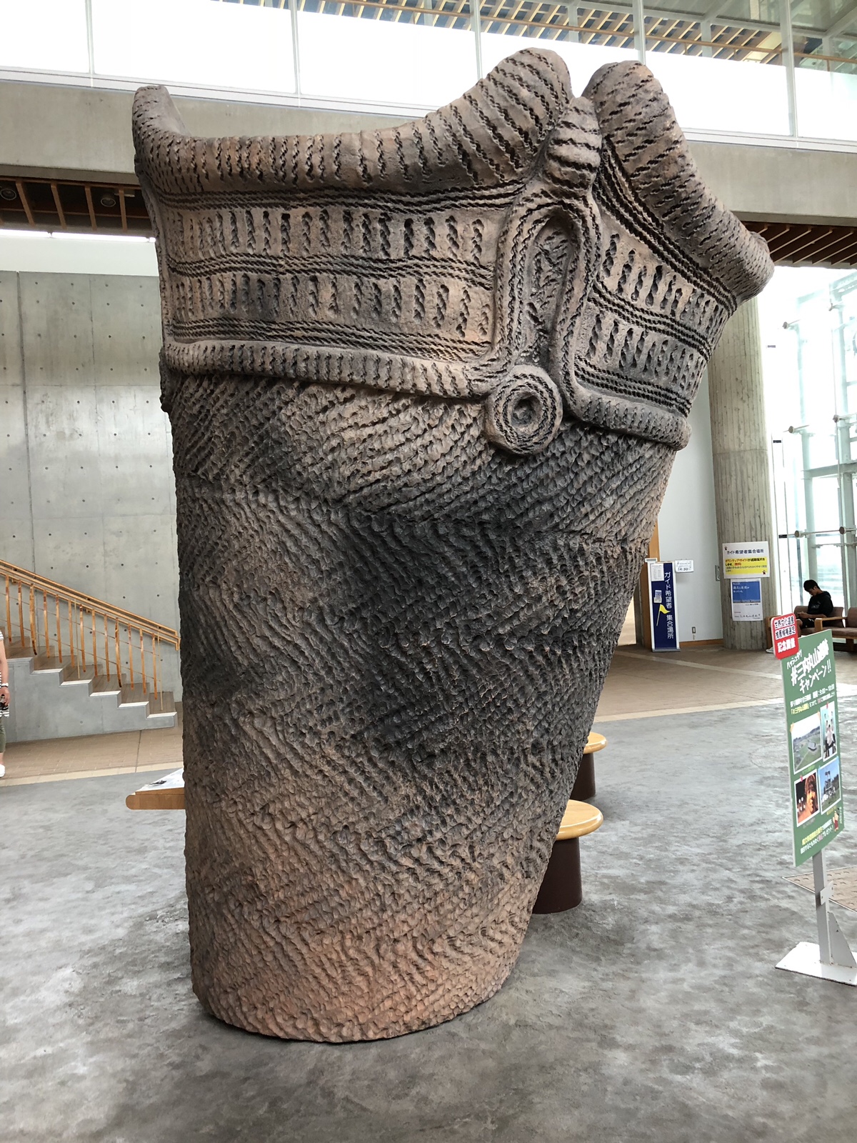 入口に建つ「縄文時游館」の中に入ると、大きな縄文土器のオブジェがお出迎え。