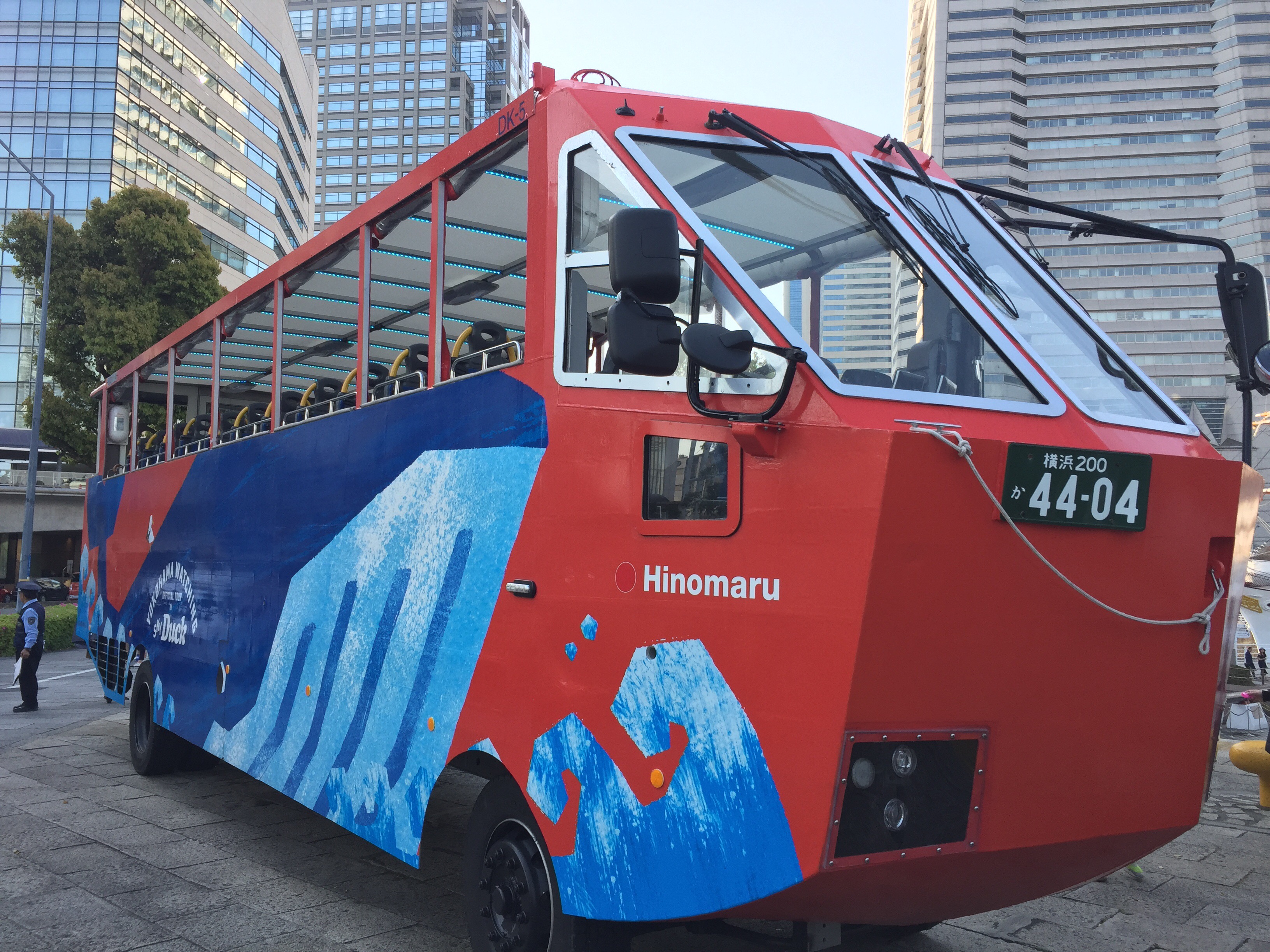 途中に水陸両用バスが停泊していました。スカイダックと言うんですね。