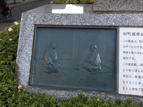 なんと、田町駅の壁に、同じように、二人の「会見の図」があるではないですか!