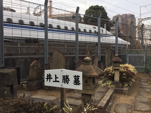 墓所は、東海道新幹線、山手線と東海道本線に挟まれたところにあります。