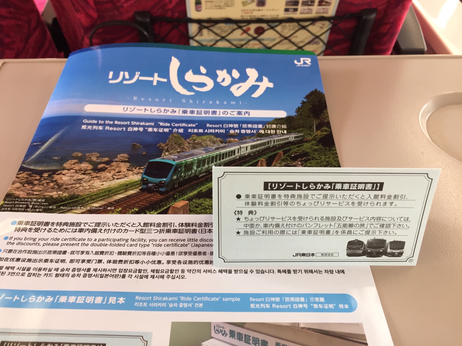 リゾートしらかみに乗車すると、一人一人に乗車証明書が配られます。