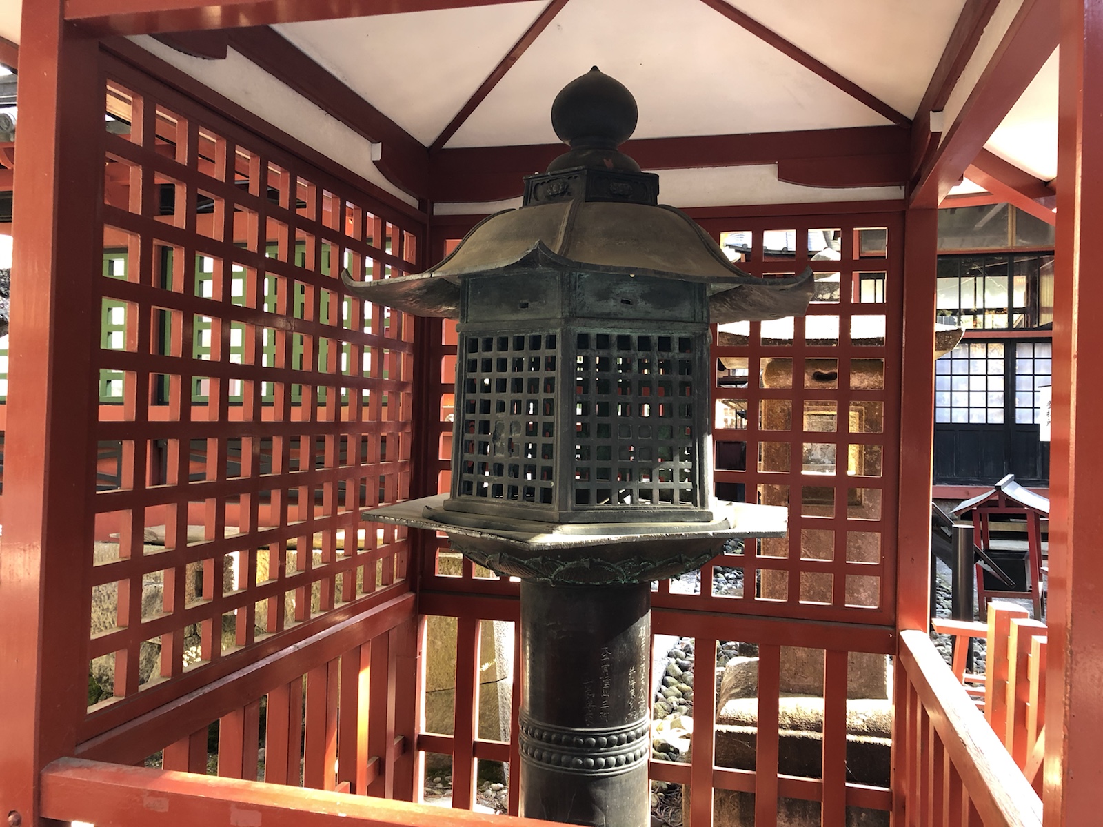 本殿の脇に立つのが、銅灯籠。通称、化け灯籠です。
