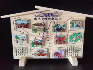 東京十社巡りのすてきなご褒美、ミニ絵馬を大絵馬に貼り付けて、思い出絵馬も完成しました。