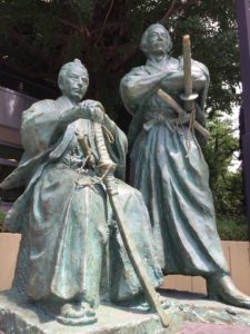 その寓居跡には、勝と龍馬の凛々しい像が置かれています。