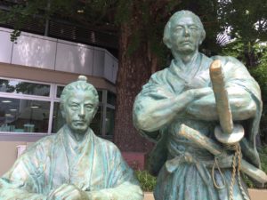 近くには2人の像がありました。その目の先には、京都の町が、そして新しいニッポンの姿が広がっています。
