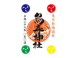 多くの社寺の御朱印が、黒の墨字に御朱印を押すというシンプルなものですが、ここ烏森神社の御朱印は、赤・黄・青・緑の4色を用いた色鮮やかなデザインです。社紋も烏をあしらっていてなんかお洒落ですよね。