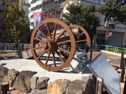 そこから運河に向けて歩を進めると、若き龍馬が警備したとされる浜川砲台跡があります。