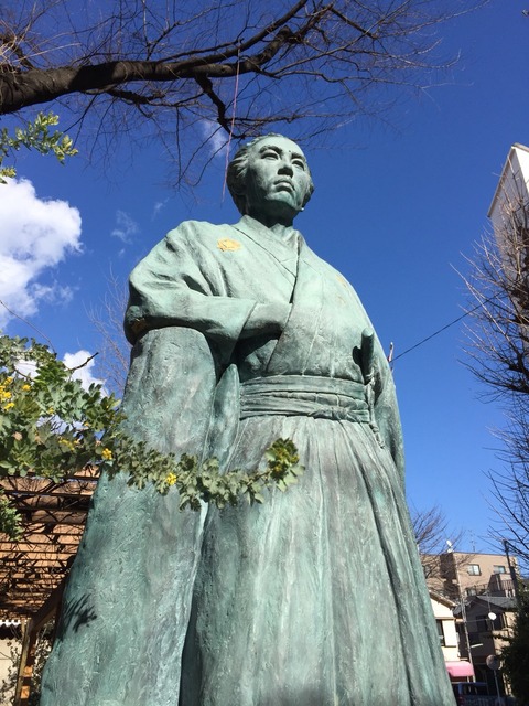京急立会川駅近くに、坂本龍馬像が設置されています。