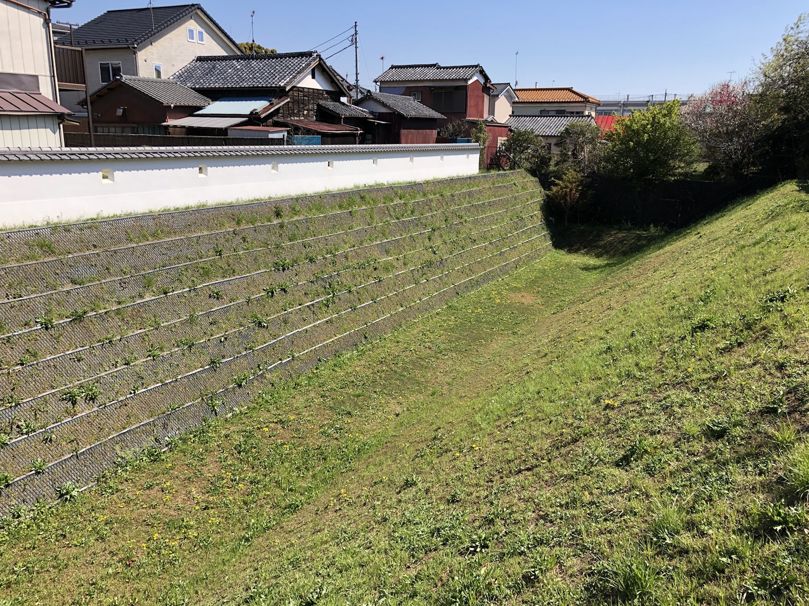 城壁側が60度、反対側が30度と、城壁側が切り立っているので、敵が攻めてきた際にこの堀を越えることが出来ません。