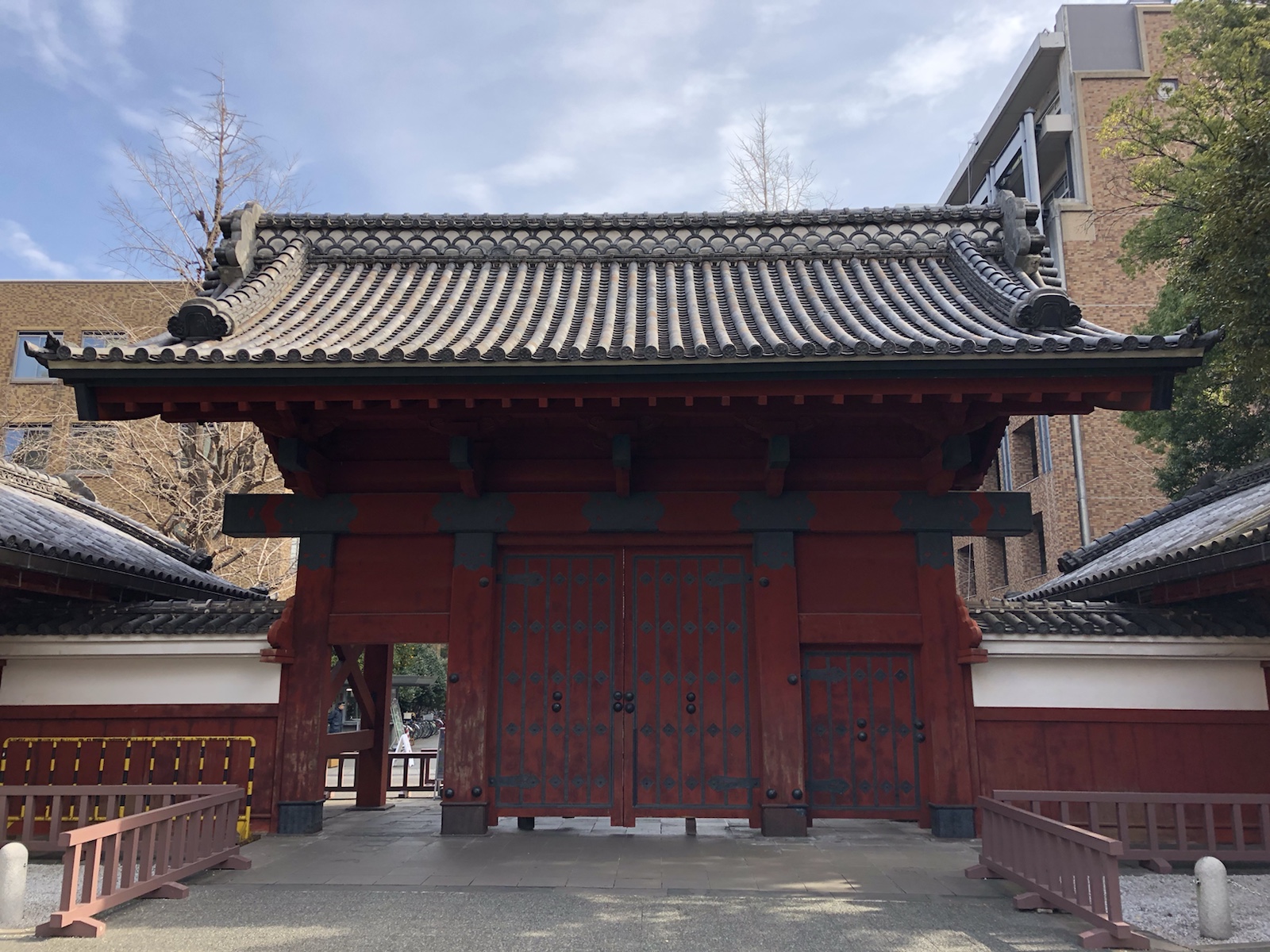 さらに歩くと、東京大学で最も知られたスポット、「赤門」にたどり着きます。